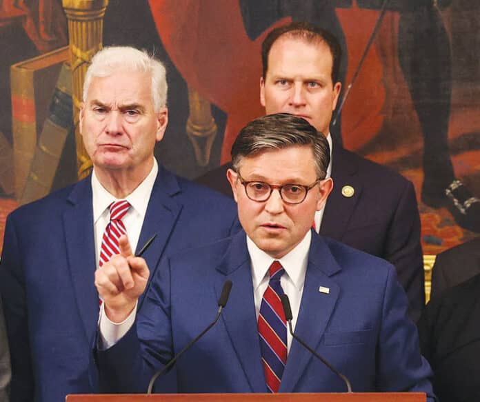 도널드 트럼프 대통령이 헌법상 불가능한 대통령 3선 도전에 관심을 보인 가운데, 공화당의 의회 1인자인 마이크 존슨 연방하원의장은 28일 현실적으로 헌법 개정이 어렵다면서 트럼프 대통령의 3선 가능성을 일축했다.