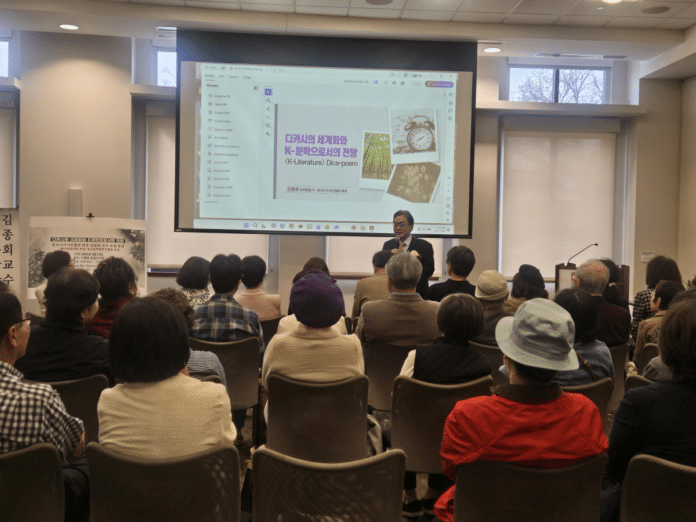 시카고디카시연구회(회장 박창호)와 예지문학회(회장 장영은)는 지난 13일 글렌뷰 공립도서관에서 김종회 한국디카시인협회 회장을 초청해 ‘한국디카시의 세계화와 K-문학으로서의 전망’을 주제로 특별 강연회를 열었다.