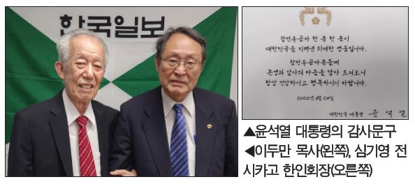 시카고 지역 올드 타이머로서 한국전에 참전했던 심기영 전 시카고 한인회장, 이두만 목사가 한국일보를 방문했다. 이들은 한국에서 지난달 25일 열린 6·25 한국전쟁 발발 72주년 기념식에 9개 유엔 참전국 참전용사와 가족 40여 명과 함께 초대받아 참석했다며 고국 방문의 소회를 전했다.