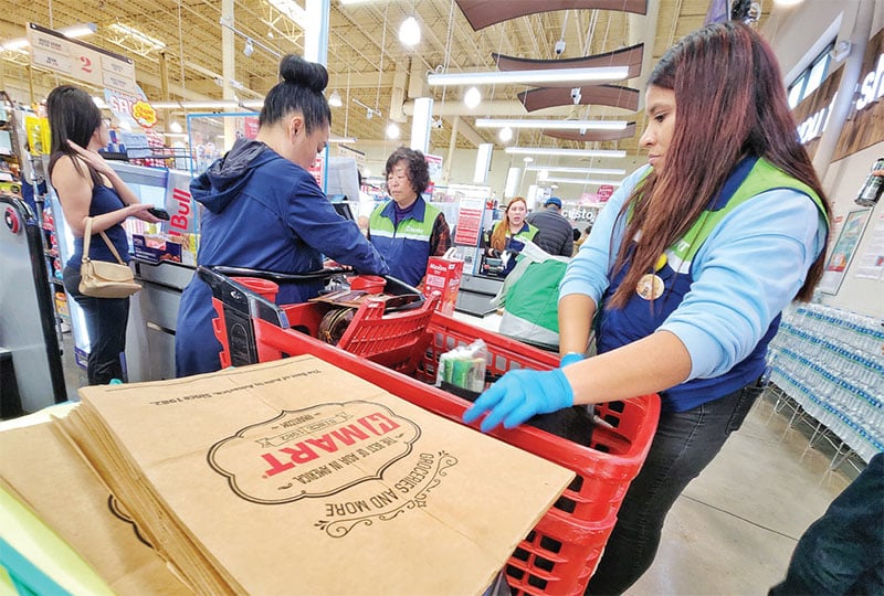 새해 첫날인 1일 LA 한인타운 H 마트 매장 등의 계산대에서는 기존의 플라스틱 봉투가 모두 자취를 감추고 대신 브라운색 종이 봉투들이 비치됐다. 한인 마켓을 찾는 고객들의 상당수는 이미 장바구니나 에코백을 준비해왔고, 미처 장바구니를 준비하지 못한 고객들은 종이 봉투를 구매해 물건을 담았다.