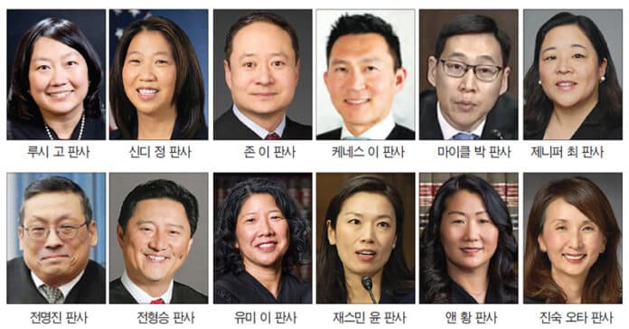 최근 전미 아시아·태평양계 변호사협회(NAPABA)에 따르면 현재 미국내 연방 판사는 총 875명인데, 이 가운데 아시아·태평양계(AANHPI) 판사는 70명으로 전체의 8.0%를 차지하고 있다. 이중 한인 판사 12명의 비중은 전체의 약 1.4%에 해당한다.