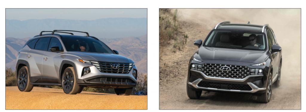 ‘US 뉴스&월드리포트’가 선정한 ‘2022 최고의 고객가치상’에서 현대차 투싼(왼쪽)이 준중형 SUV, 싼타페가 중형 SUV 부문에서 1위에 올랐다. [현대차그룹 제공]