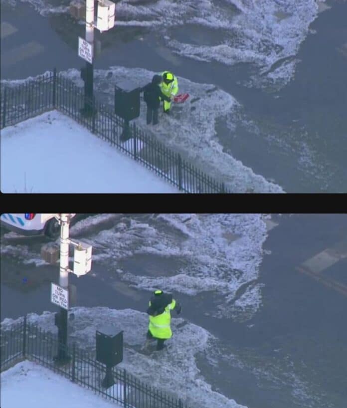 사고 당시 현장에서는 횡단보도 신호를 기다리던 한 어린 학생이 발목까지 차오른 물길에 가로막혀 어쩔 줄 몰라 하는 상황이 벌어졌다. 이때 학생들의 안전 등교를 돕던 ‘크로싱 가드(Crossing Guard)’ 자원봉사자가 학생을 돕기 위해 직접 몸을 던지는 모습이 포착돼 주위에 감동을 주었다.