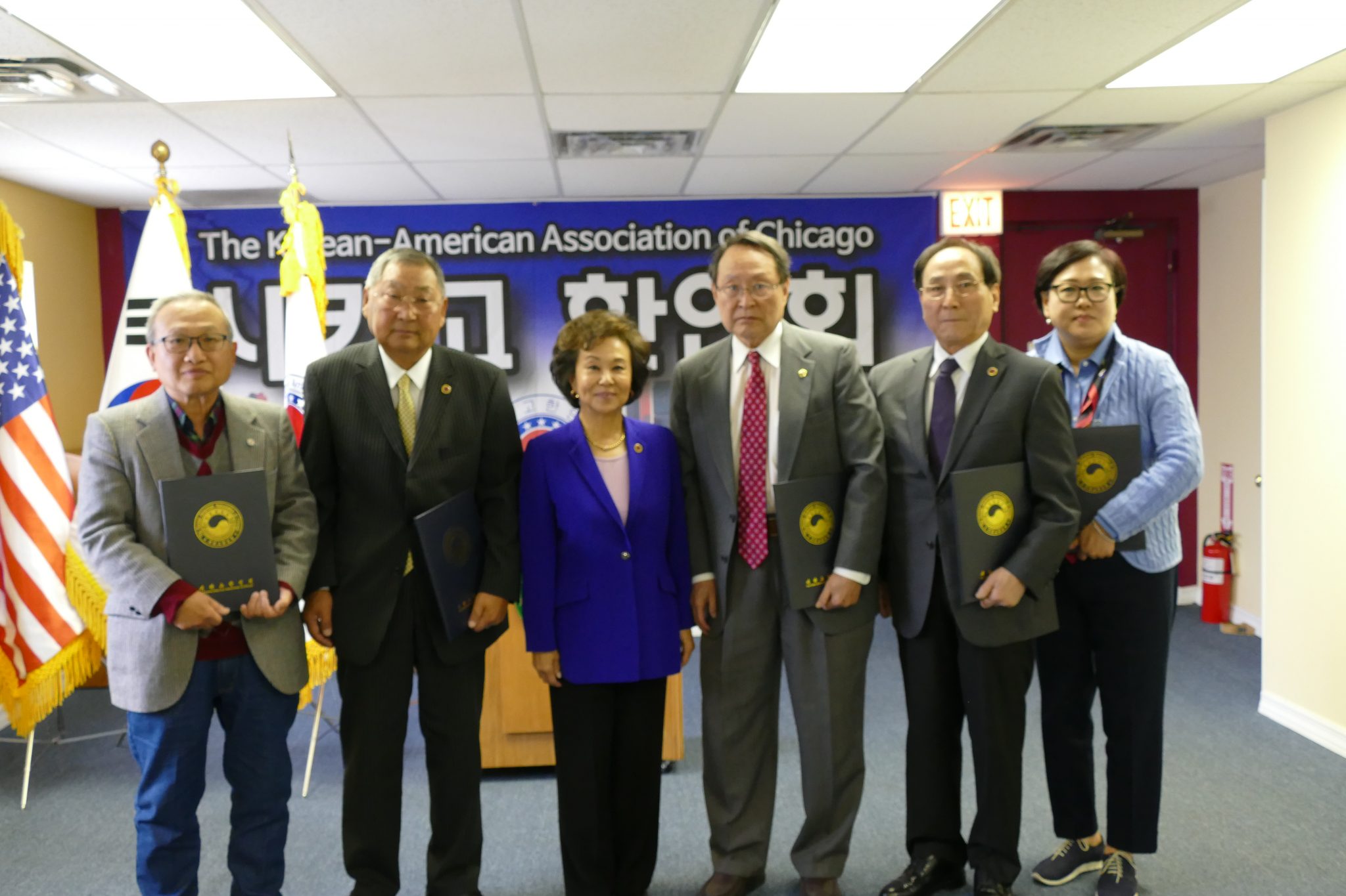 시카고한인회가 지난 5일 시카고시내 한인회관에서 한인회 상설기구인 회관위원회 총 7명(위원장-심기영, 위원-정해림, 장영준, 박만종, 명계웅, 월터 손, 수잔 김)의 위원들에게 위촉장을 전달했다. 회관위는 한인회관 관리 운영 또는 이전을 위한 업무를 관장하게 되며 임기는 4년이다. 회관위 위원들과 진안순 한인회장이 기념촬영을 했다.(왼쪽부터 명계웅, 정해림, 진안순, 심기영, 월터 손, 수잔 김)<사진=한인회>