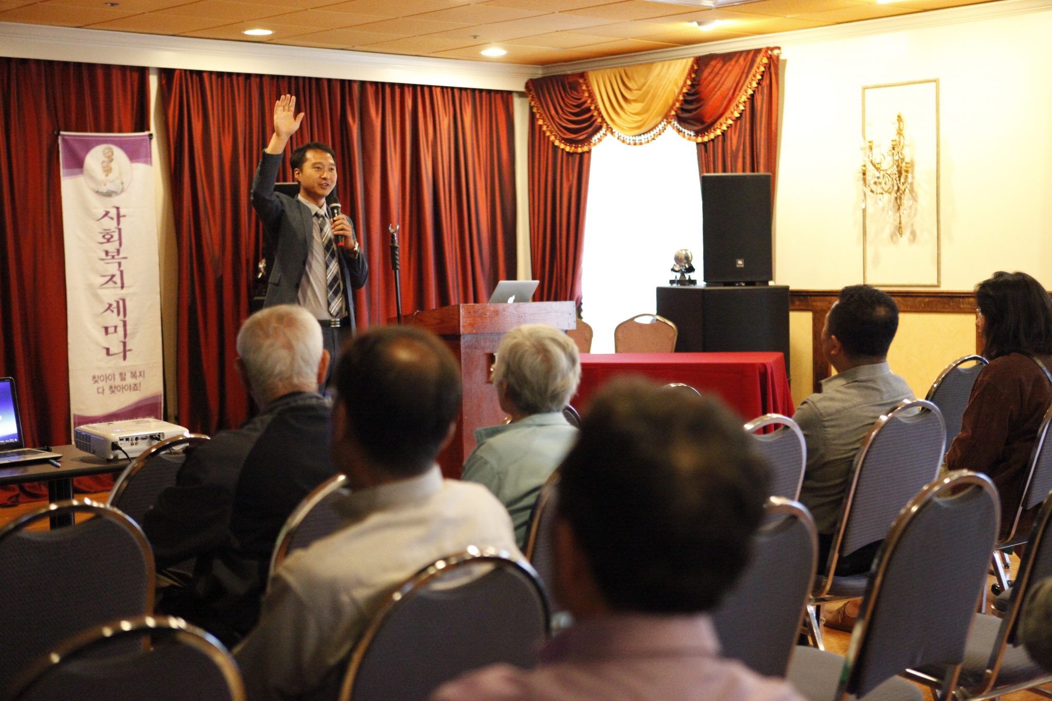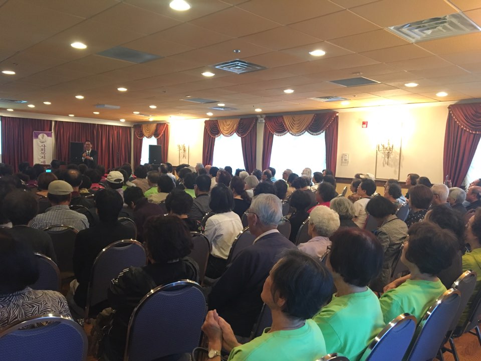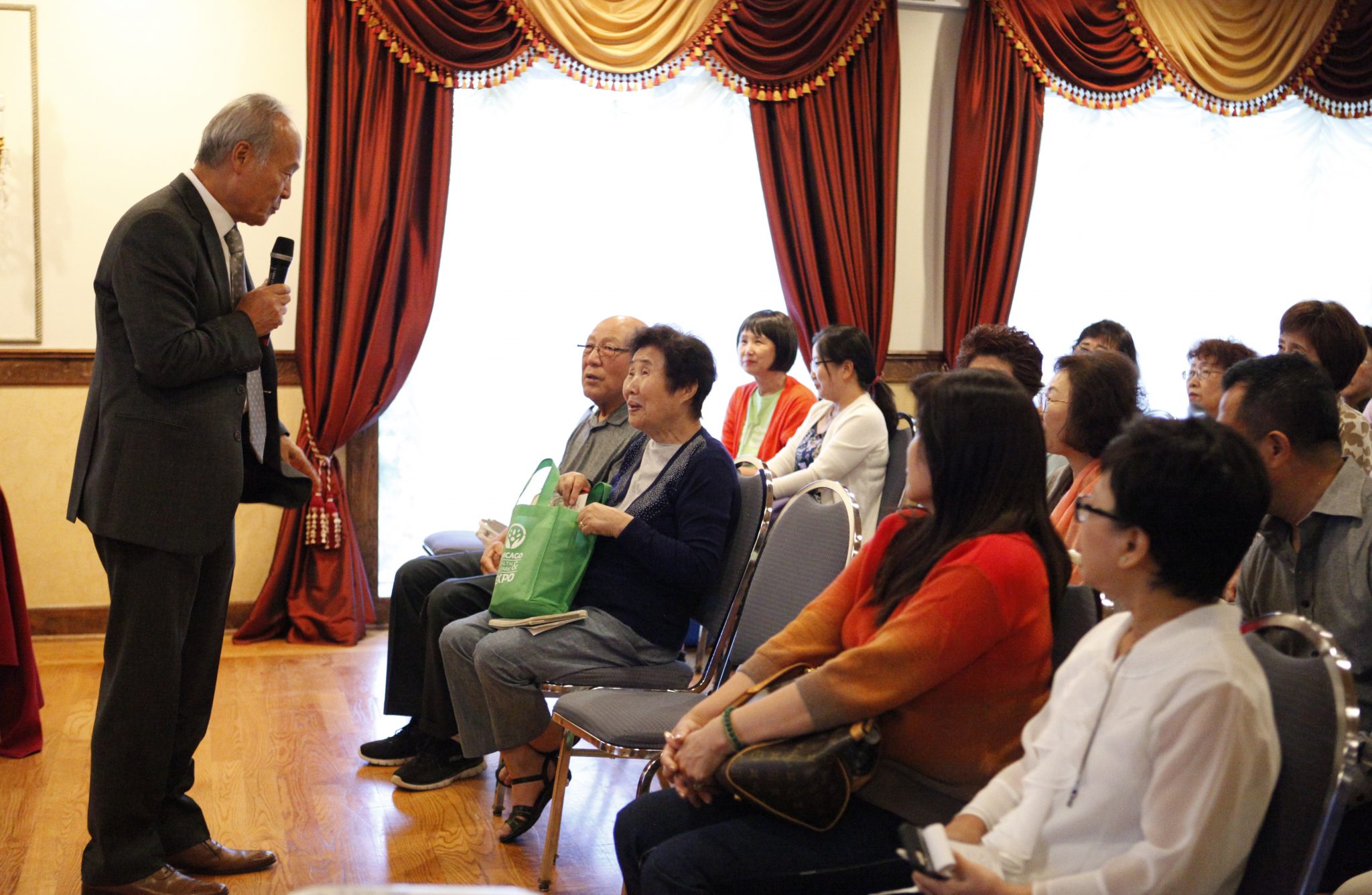 세미나실을 가득 메운 청중들이 찰리 안 안과전문의의 강연을 경청하고 있다.