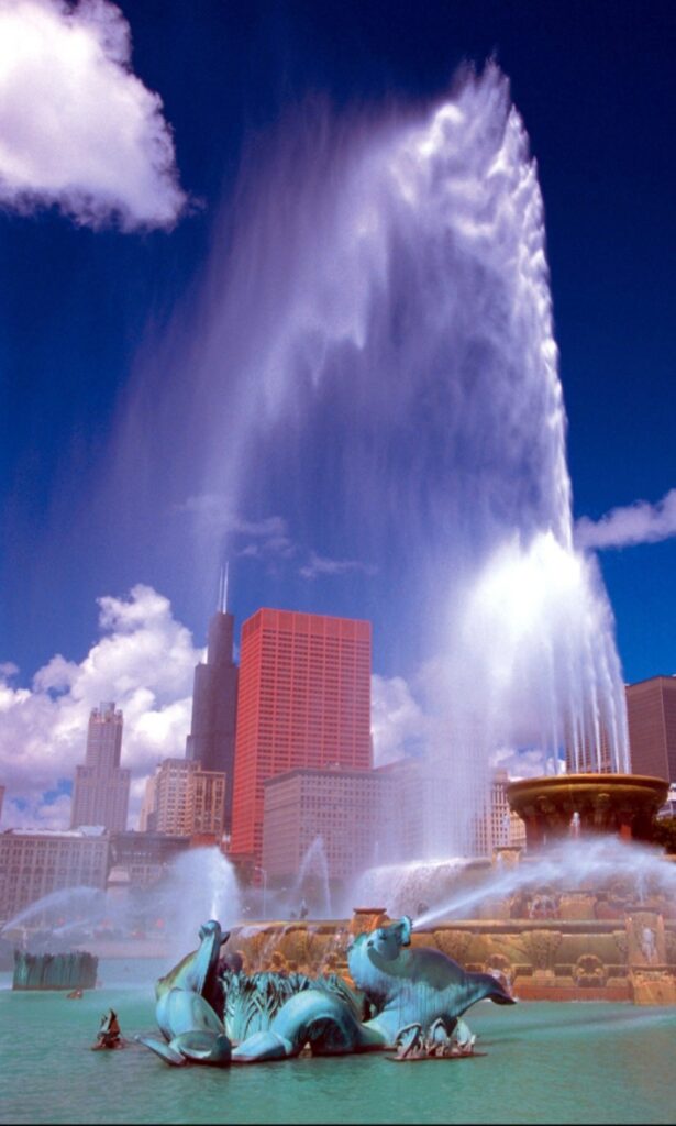 미시간 호숫가에 접해 있는 시카고 다운타운 그랜트팍을 찾는 방문객들은 시원한 물줄기가 뿜어져 나오는 버킹엄 분수대를 만나게 된다.