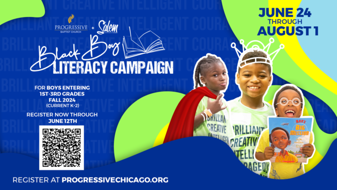 사우스 사이드의 Salem과 Progressive Baptist 교회가 흑인 소년들의 독서 능력 향상을 위한 특별한 프로그램을 시작해 시카고에 자부심이 되었다. 이 프로그램은 ‘Black Boy Literacy’라는 이름으로 작년 여름 처음 시작되었으며, 큰 성공을 거둬 올해도 다시 열렸다. 이 프로그램은 새로운 학기를 준비하는 흑인 소년들을 돕고 있으며 다른 흑인 교회들에게 모델이 되어 전국적으로 폭발적으로 증가하고 있다.