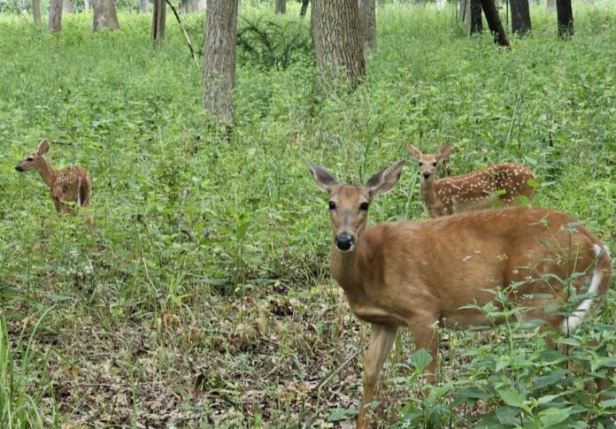 시카고 서버브 지역에 최근 비가 자주 뿌리면서 공원 내 초목들도 여름철의 녹음이 짙어가는 가운데 엄마 사슴과 함께 풀을 뜯는 새끼 사슴 두 마리가 쿡카운티 포레스트 프리저브에 나타났다.
