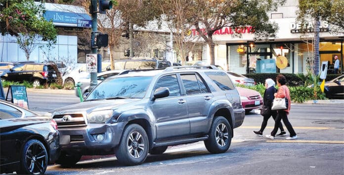 지난해 보행자들의 안전을 위해 제정된 ‘데이라이트 법’(AB 413)에 따라 주차금지를 뜻하는 빨간색 페인트가 칠해지지 않는 곳이라 해도 건널목에서 중형 미니밴 한대 길이인 20피트 이내에 차량 주차가 금지된다. 위반시 벌금 65달러와 행정비용 12.50달러를 합친 77.50달러의 티켓이 발부된다.