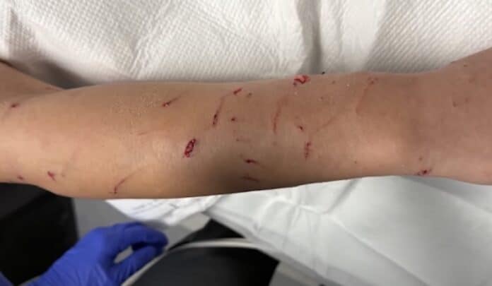 오른쪽 팔 등에 여러 개의 긁힌 상처가 났으며 곧바로 인근 병원으로 이송되어 치료를 받았다.