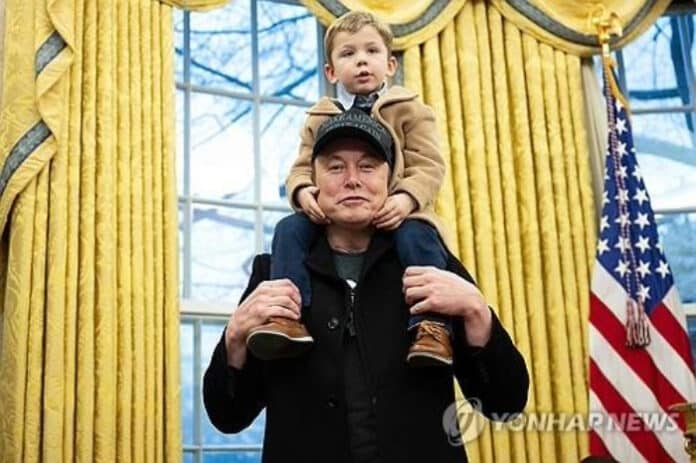 4세 아들을 백악관 집무실에 데려온 일론 머스크 [AFP 연합뉴스 자료사진]