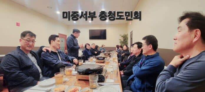 미중서부 충청도민회가 지난 20일 4월 월례회를 장충동 식당에서 가졌다. 충청도민회는 이 날 참석한 25명의 회원 및 가족들이 함께모여 따뜻한 고향의 정을 나누는 뜻깊은 시간이었다고 전했다. 참석자들은 맛있는 고기 뷔페와 함께 반주를 곁들이며 즐거운 대화와 친목의 시간을 이어갔다.