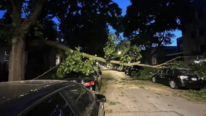 로렌스와 밀워키 길 인근 지역은 밤새 폭풍우로 인한 피해 신고가 700건 이상이 접수됐으며 날이 밝자 컴에드는 전력 복구를 위해 요원들을 투입시켰다.