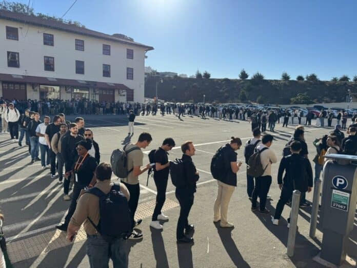 오픈AI 개발자 콘퍼런스에 늘어선 줄_샌프란시스코=연합뉴스