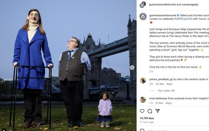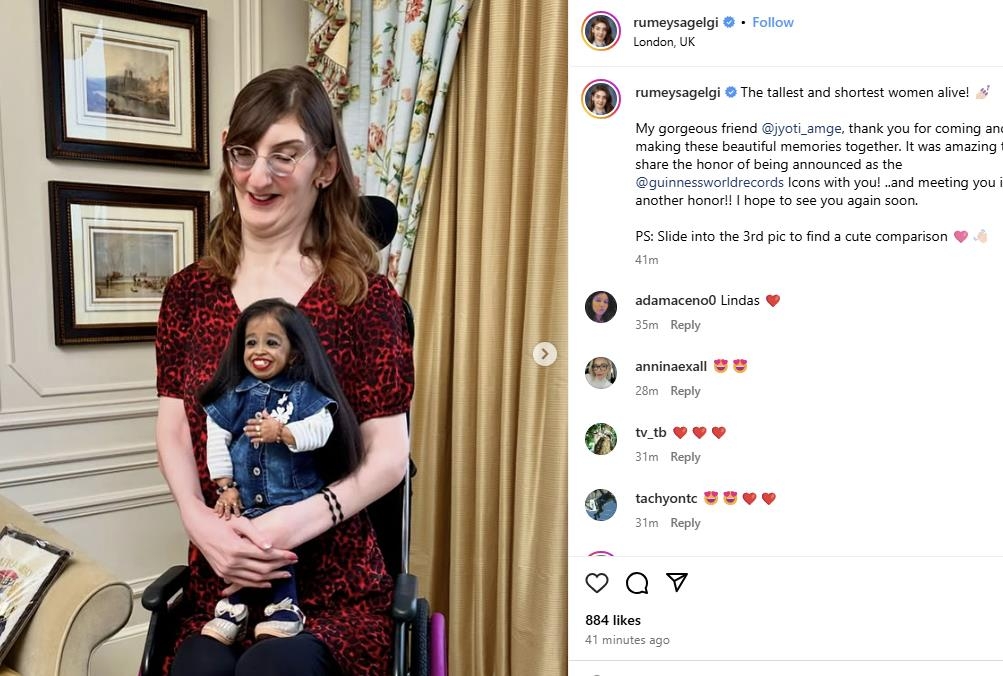 튀르키예에서 웹 개발자로 일하는 루메이사 겔기(27)는 키가 215.16㎝이며 인도 배우인 지오티 암게(30)는 62.8㎝다. 이들은 기네스 월드 레코드에 각각 세계 최장신, 최단신 여성으로 이름을 올렸다.