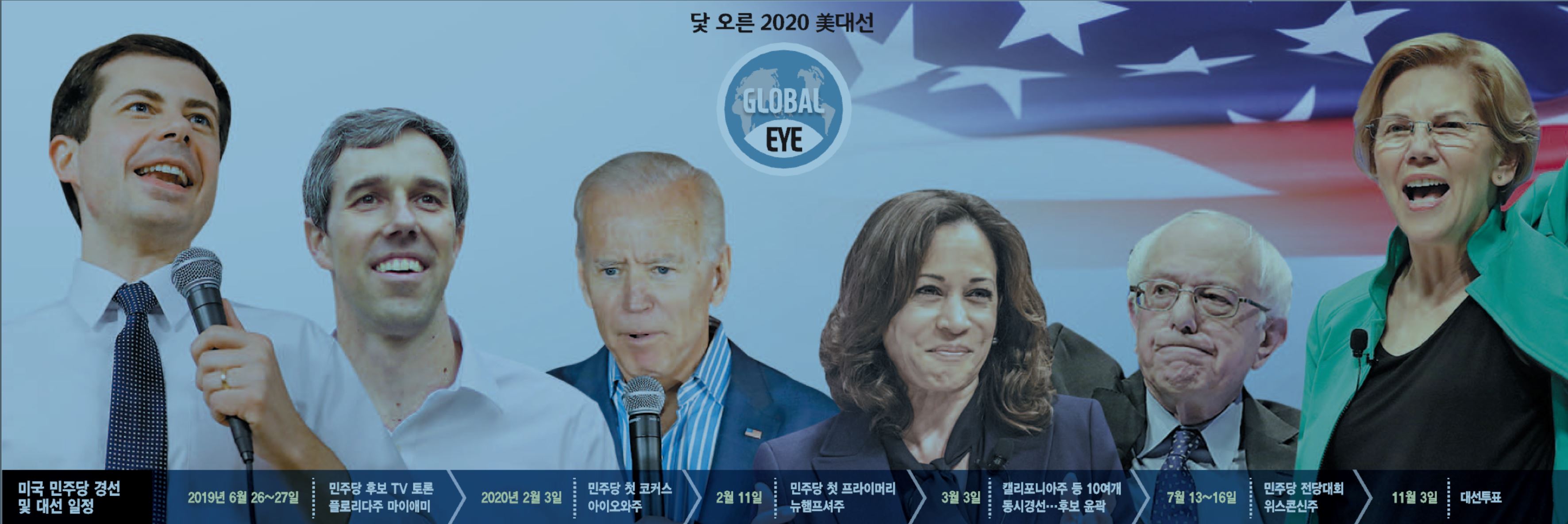 도널드 트럼프 대통령의 재선 저지를 지상과제로 둔 민주당의 오는 2020년 대선 후보 경선 레이스가 다음달 첫 TV토론을 시작으로 막을 연다. 트럼프의 연임을 막겠다며 손을 든 민주당 후보는 현재까지 총 21명. 유력 주자 대부분이 출사표를 던진 가운데 트럼프 대통령과 건곤일척의 한판 승부를 벌일 주인공이 누가 될지를 놓고 미국은 물론 전세계의 관심이 뜨겁다. 현재 조 바이든(76) 전 부통령이 사전 여론조사 1위를 달리고 있지만 TV토론과 러닝메이트(부통령 후보) 지명, 초반 코커스 등 변수가 많아 향후 경선 판세는 여러 차례 요동칠 것으로 전망된다.