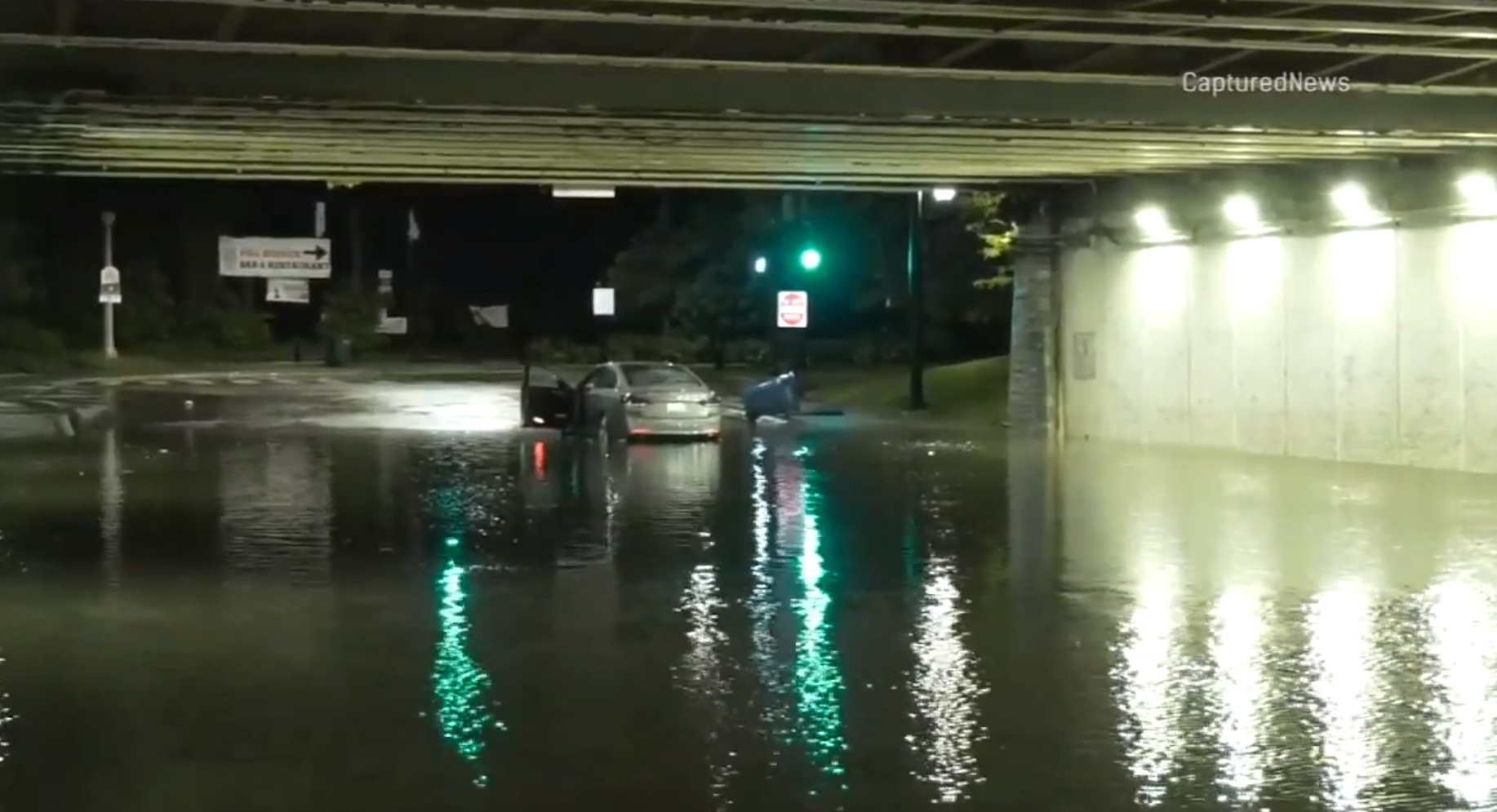 시카고 일원에 지난 4일 밤 2인치 이상 쏟아진 호우로 시카고시내 레익쇼어 드라이브와 먼트로즈, 어빙팍 길 일부가 침수돼 5일 아침 7시까지 교통이 통제됐다. 사진은 레익쇼어 드라이브로 가는 먼트로즈 도로상에 차량이 물에 잠겨있는 모습.<abc TV>
