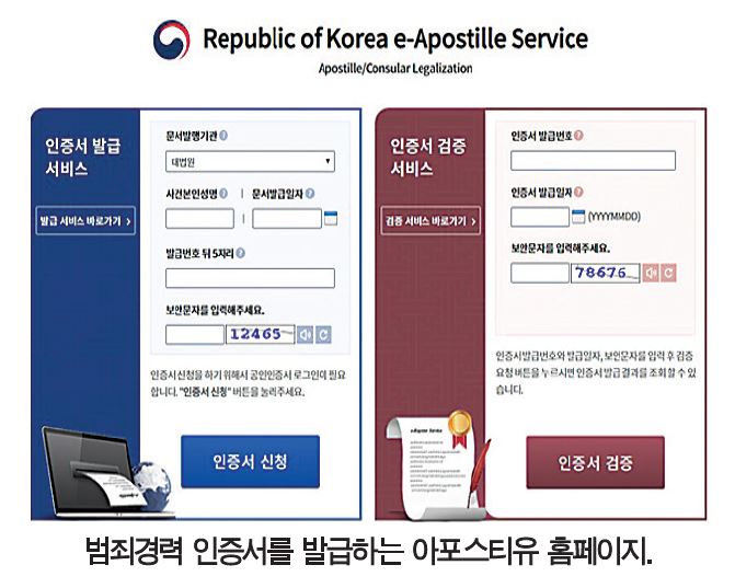 그동안 해외 체류를 위한 비자 심사를 받기 위해 경찰서 또는 온라인에서 범죄·수사경력회보서를 발급받은 뒤, 서울에 있는 외교부에 직접 방문해 ‘아포스티유’를 발급받아야 하는 불편을 겪어 왔다.
