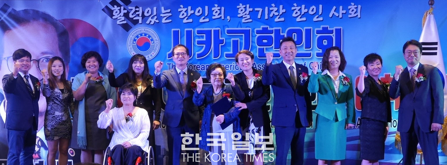 올 7월 1일부터 2년의 공식 임기를 시작한 이성배 회장, 김주진 이사장을 비롯한 제34대 임원진은 지난 7월 23일 노스브룩 소재 힐튼호텔에서 각계 인사 500여명이 참석한 가운데 취임식을 갖고 “활력있는 한인회, 활기찬 한인사회!”란 슬로건을 내걸고 힘차게 출발했다. 34대 한인회 임원진은 ▲회장 이성배 ▲이사장 김주진 ▲부회장 이정혜·이동렬·크리스티나 이·제니 리·이진수 ▲부장 김미경·백민애·유승현·박춘호·한기수·조이 박·김문경씨 등이다.