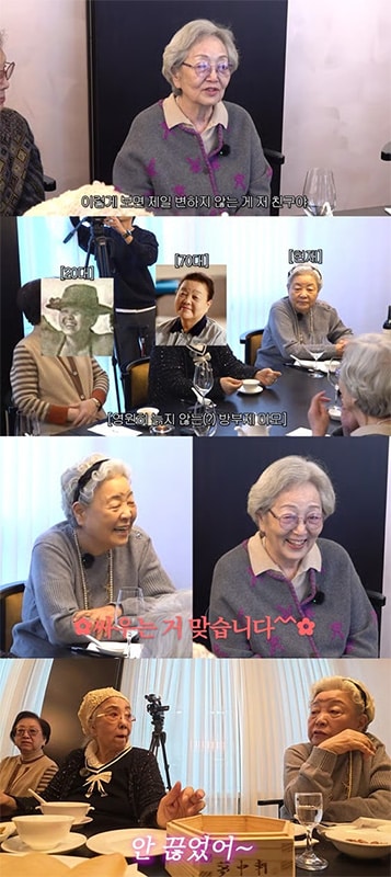 이날 박정란 작가는 강부자를 향해 “왜 예뻐졌냐”고 칭찬했다. 김영옥도 “제일 변하지 않는 게 저 친구다”라고 말했다.