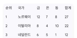 [밀라노-코르티나 동계올림픽] 미국 4위·한국 16위 선전