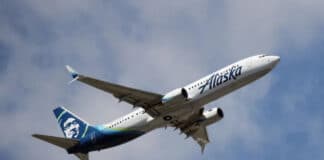 알래스카 항공기 날개에 오른 탑승객