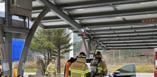 평창휴게소 주차된 차량 화재…해·공군 부사관 일가족이 진화