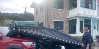 빨랫줄이 버스에 걸려 마을 정자 지붕 무너져…주민 2명 부상