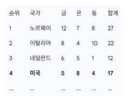 [밀라노-코르티나 동계올림픽] 미국 4위·한국 16위 선전