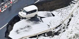 주유소 지붕, 폭설로 주저앉아