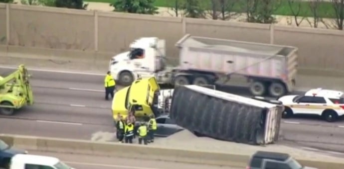 시카고 서부 교외 힐사이드 인근 고속도로에서 덤프트럭이 전복되는 사고가 발생해 교통 혼잡이 빚어졌다.