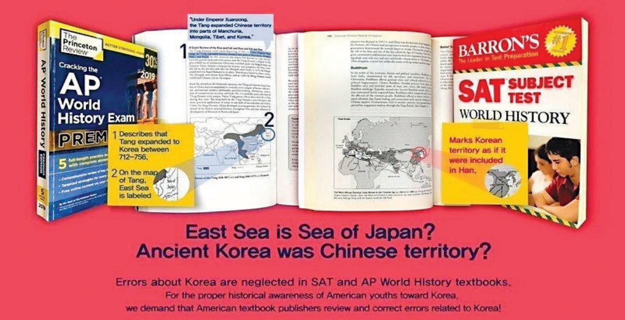 반크는 바론즈사와 SAT 시험주관사 칼리지 보드, 프린스턴 리뷰사 등 3개 출판사가 발행한 새 교재를 최근 분석한 결과, 한국과 관련된 터무니 없는 오류를 발견했고, 시험 문제로도 출제된 사실을 확인했다.